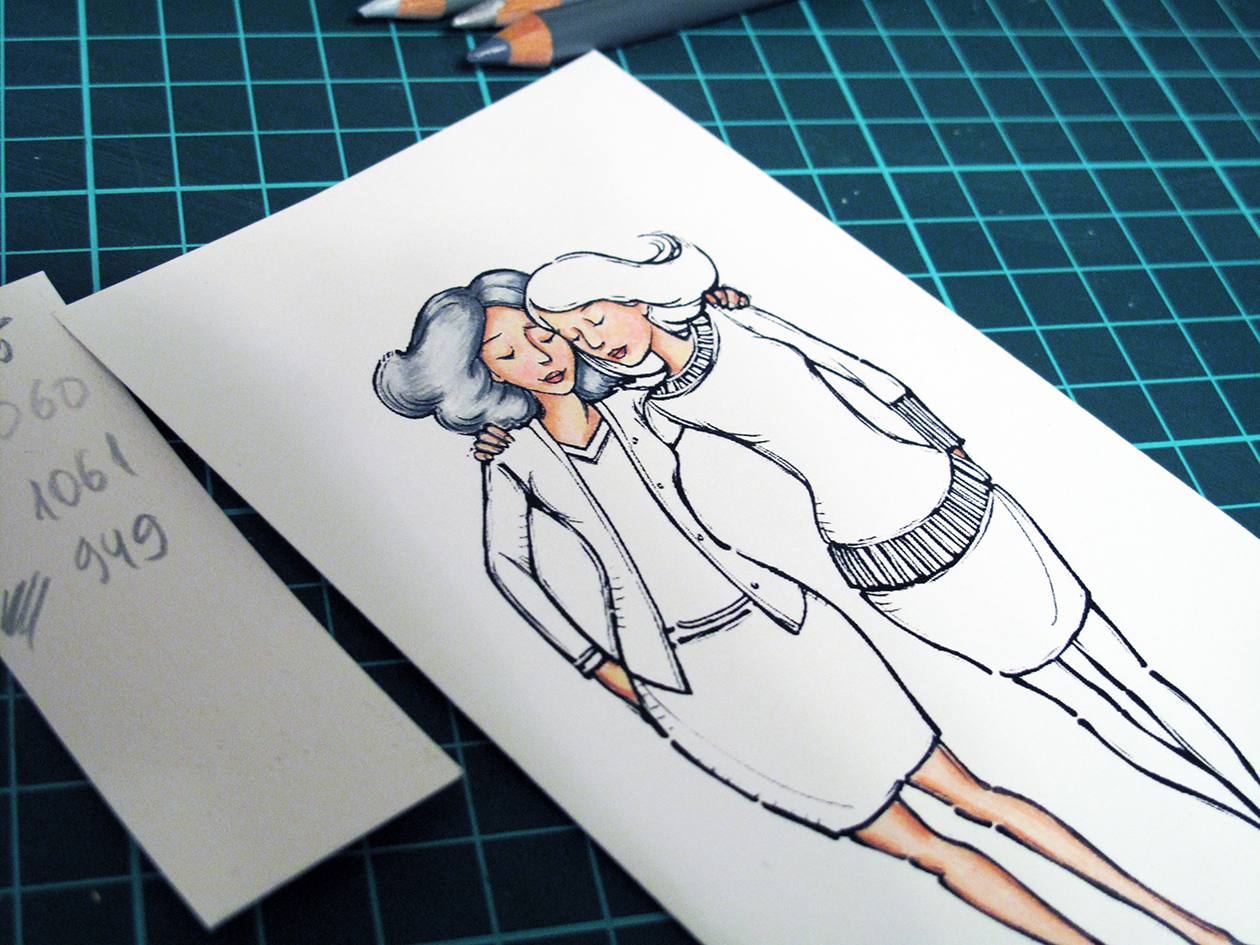 Так как у меня по идее мама и дочка, то я решили что дама слева у меня будет в благородной сединой, а справа - светлая шатенка.